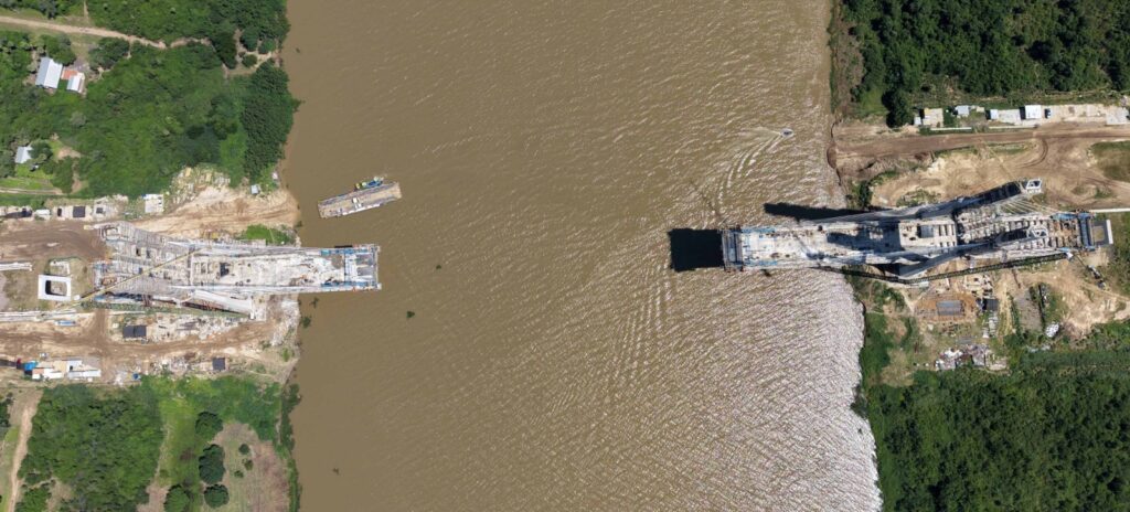 A construção da ponte internacional sobre o Rio Paraguai, peça central da Rota Bioceânica, avança com ritmo acelerado e revela, a cada nova etapa, a imponência de uma das maiores obras de engenharia da América do Sul. No sábado, 22, durante vistoria técnica, já era possível dimensionar a grandiosidade da passarela que irá interligar Brasil e Paraguai — um marco que transformará o futuro logístico de todo o continente.